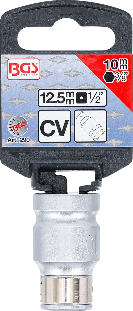 Adaptér pre bity, s poistnou guľôčkou, 1/2″ pohon, 3/8″ vnútorný 6-hran, BGS 290