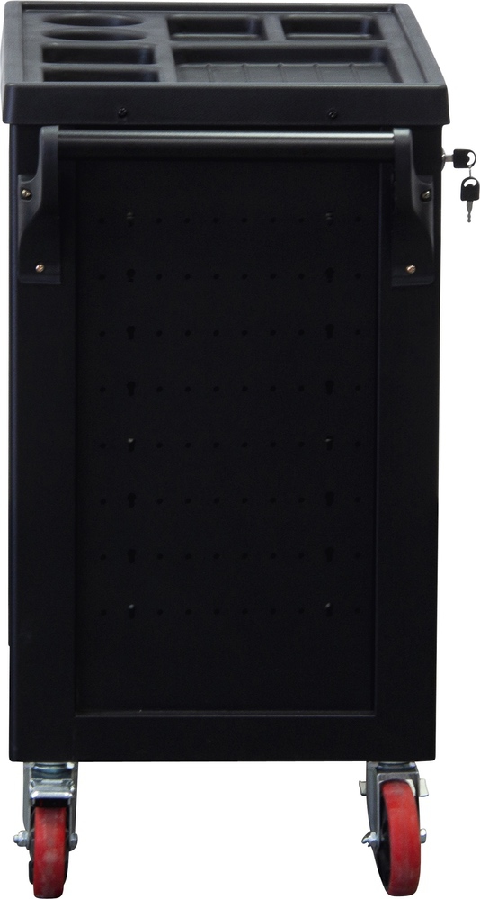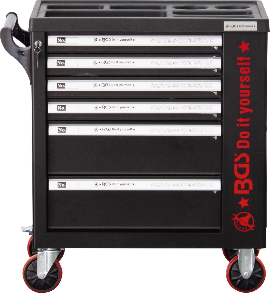 - 4 kolieska s guličkovými ložiskami, z toho 2 otočné kolieska s aretáciou s Ø 120 mm a 2 pevné kolieska s Ø 120 mm
