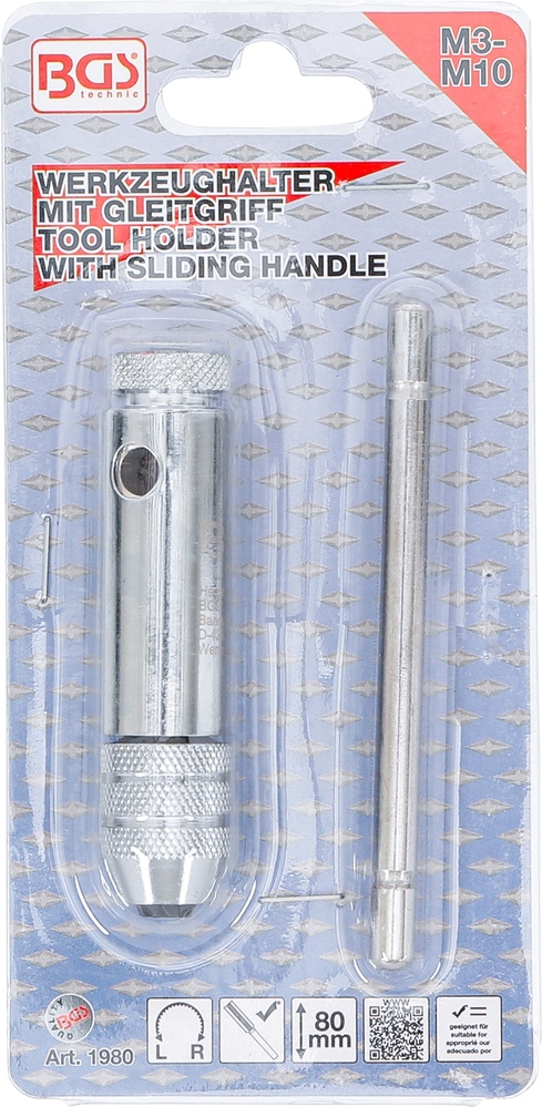 Vratidlo na závitníky, posuvné, M3 – M10, 80 mm, BGS 1980