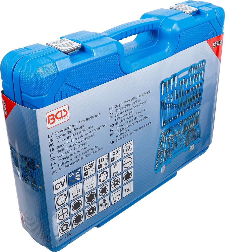Gola sada 1/4″, 3/8″, 1/2″, 6-hran, 4 – 32 mm, 214 dielov, BGS 2259