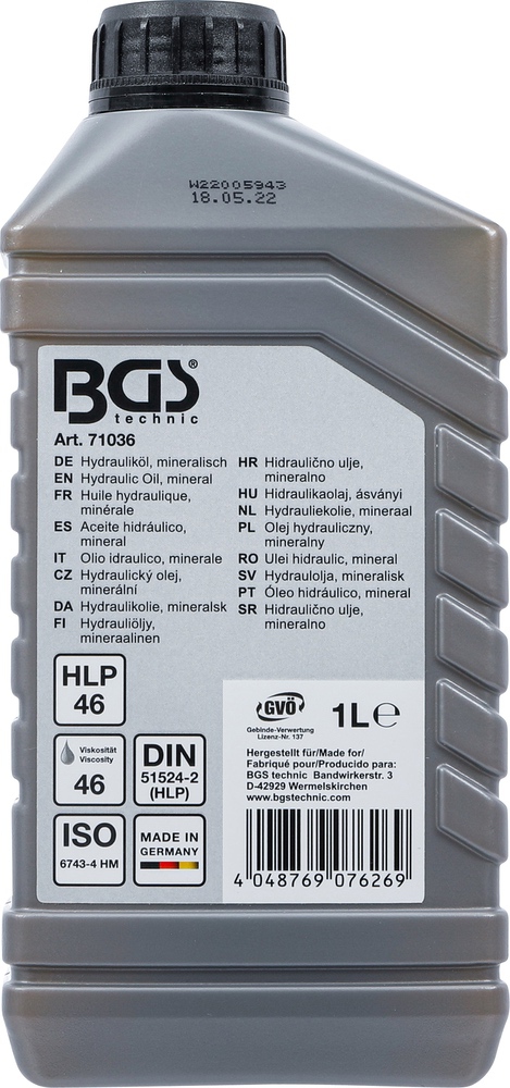 Olej hydraulický, minerálny, 1 l, BGS 71036