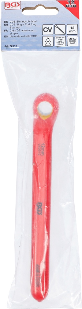 Kľúč očkový jednostranný, VDE, vyhnutý, 12 mm, BGS 72012