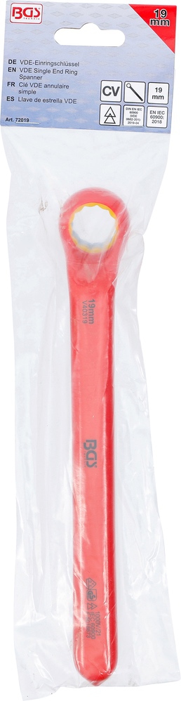 Kľúč očkový jednostranný, VDE, vyhnutý, 19 mm, BGS 72019