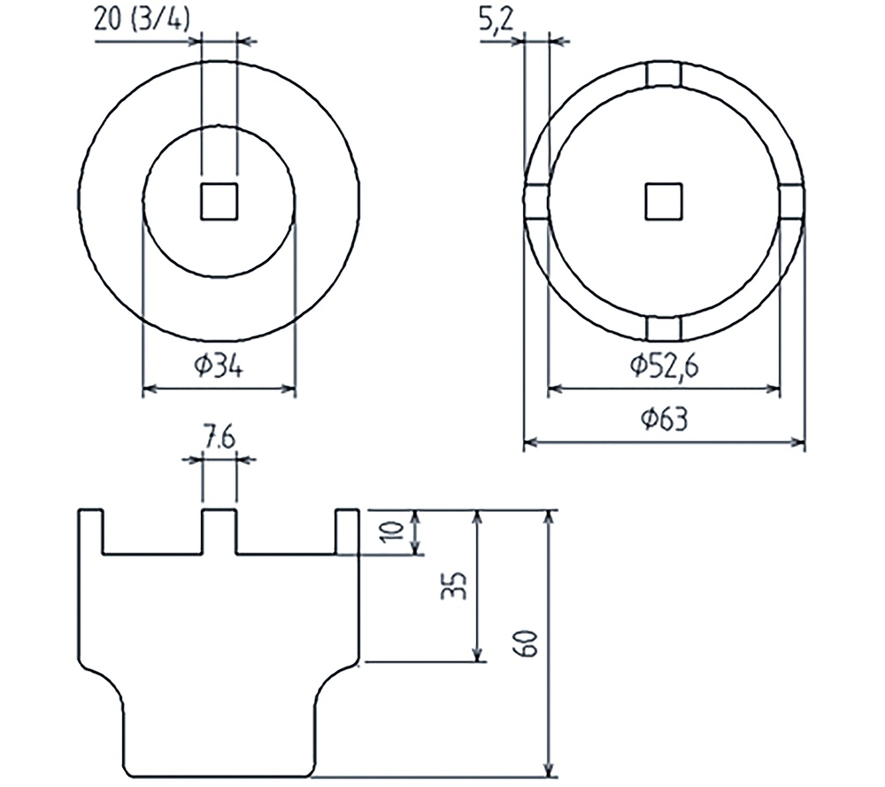 Veľkosť profilu pohonu, rozmer v palcoch: 3/4 „