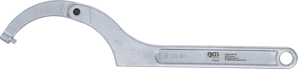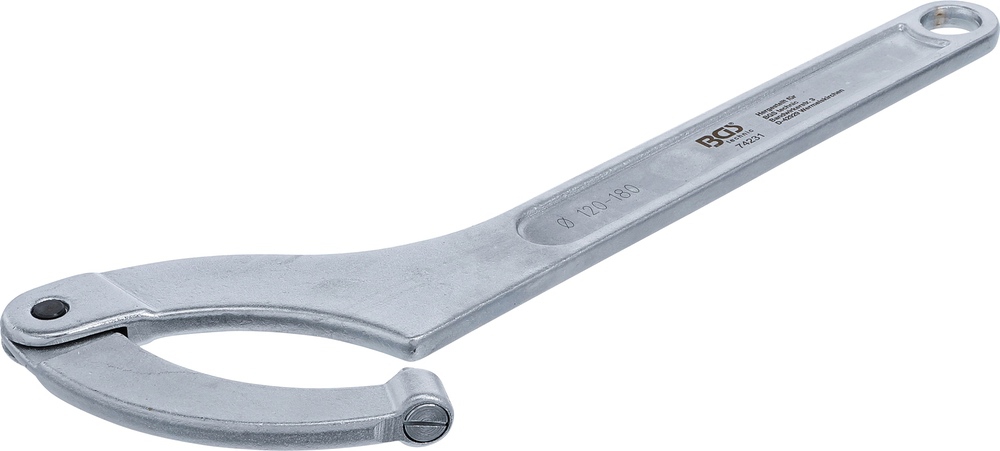 Kľúč hákový nastaviteľný s kolíkom, 120 – 180 mm,BGS 74231