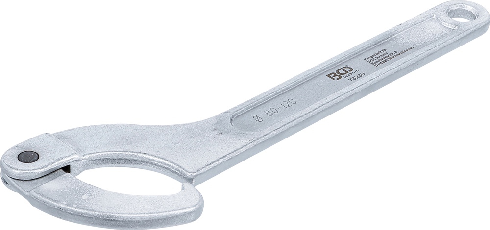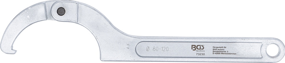 Kľúč hákový nastaviteľný s výstupkom, 80 – 120 mm, BGS 73230