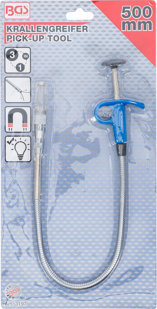 Zdvihák magnetický / vyťahovák predmetov so svetlom, 3 v 1, 500 mm, BGS 3197