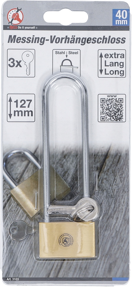 Zámok visiaci mosadzný | veľmi vysoký strmeň | 40 mm