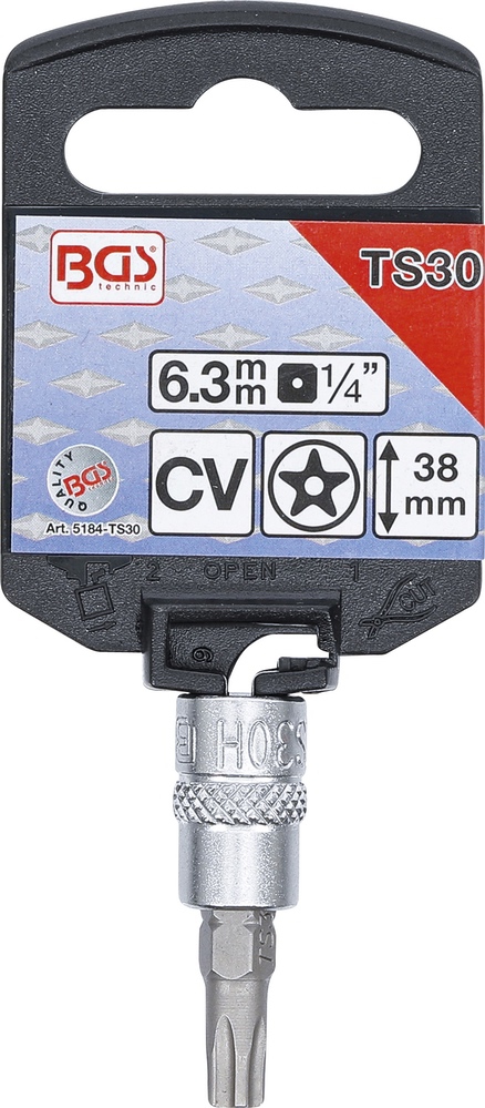 Hlavica zástrčná 1/4″, TS-profil s vŕtaním TS30, dĺžka 38 mm, BGS 5184-TS30