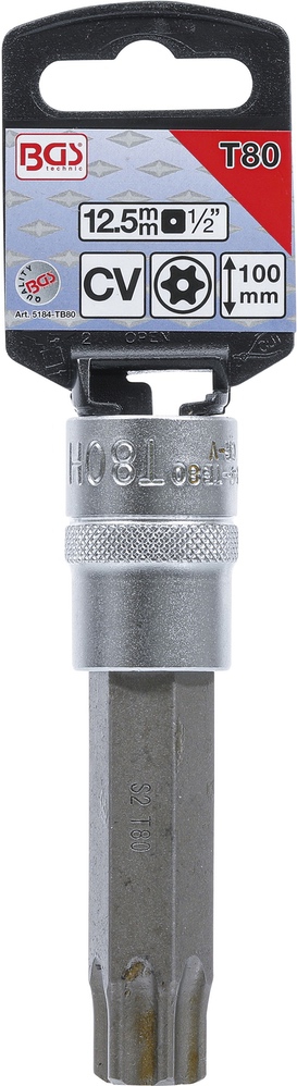 Hlavica zástrčná 1/2″, dĺžka 100 mm, T-profil s vŕtaním T80, BGS 5184-TB80