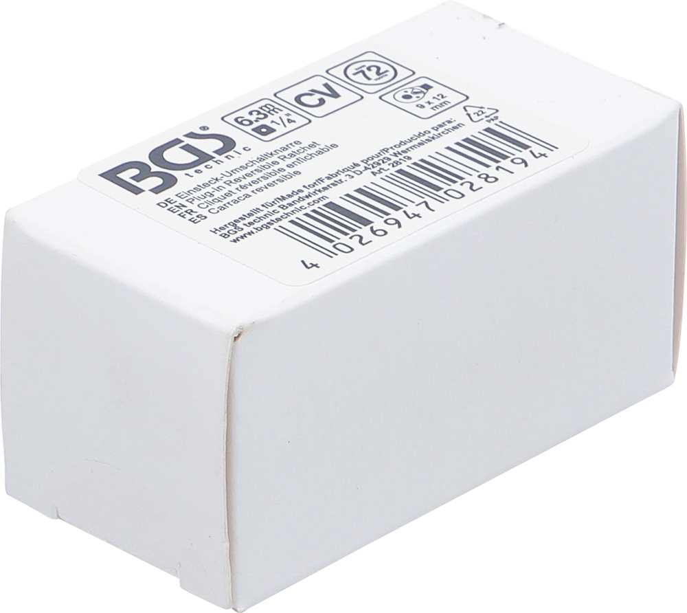 Račňa nástrčná prepínacia, 1/4″, 4-hran 9 x 12 mm, 48 zubov, BGS 2819
