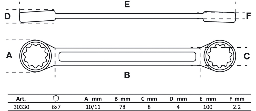 Kľúč očkový obojstranný, extra plochý, 6 x 7 mm, BGS 30330