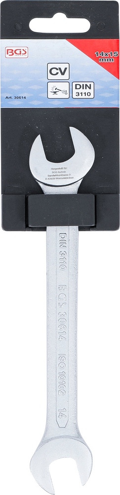 Kľúč plochý vidlicový, obojstranný, 14×15 mm, za studena kované, BGS 30614