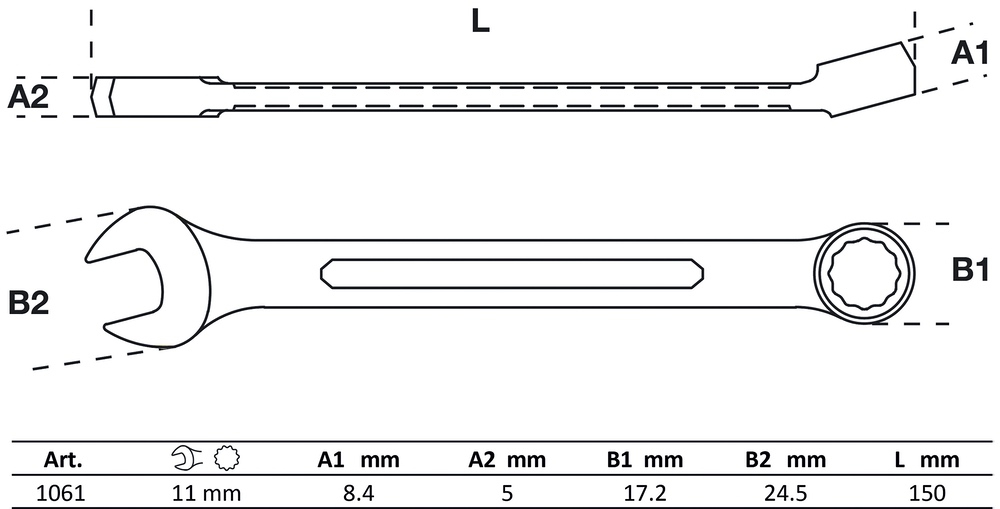 Kľúč očkoplochý 11 mm, za tepla kovaný, BGS 1061