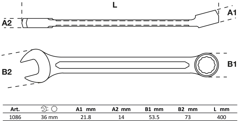 Kľúč očkoplochý 36 mm, za studena kovaný, matný, BGS 1086