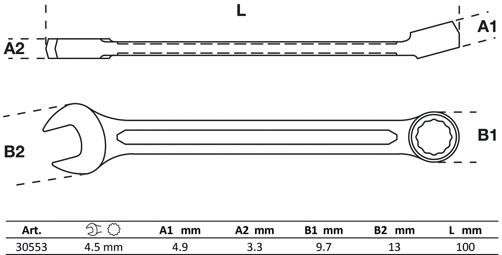 Kľúč očkoplochý 4,5 mm, za studena kovaný, matný, BGS 30553