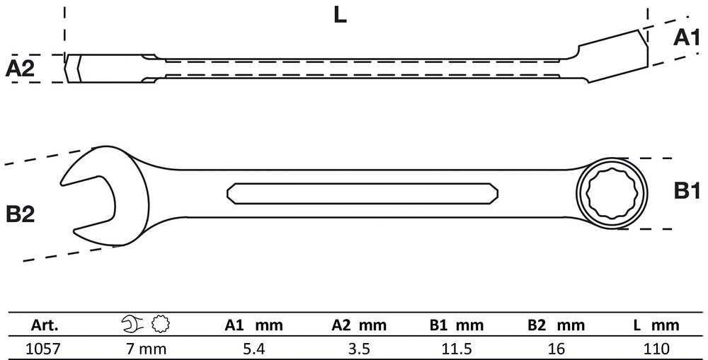 Kľúč očkoplochý 7 mm, za tepla kovaný, BGS 1057