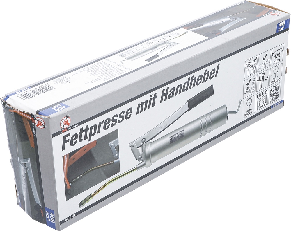 - možno naplniť kartušou na mazivo 400 g (DIN 1284), voľným mazivom a plniacim prístrojom