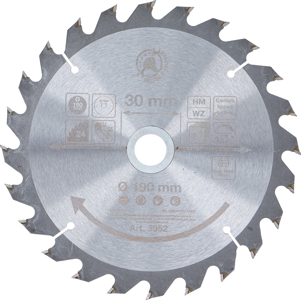Kotúč pílový s karbidovými hrotmi, Ø 190 x 30 x 2,5 mm, 24 zubov, BGS 3952