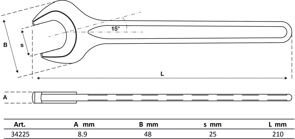 Kľúč plochý vidlicový, jednostranný, DIN 894, 25 mm, BGS 34225