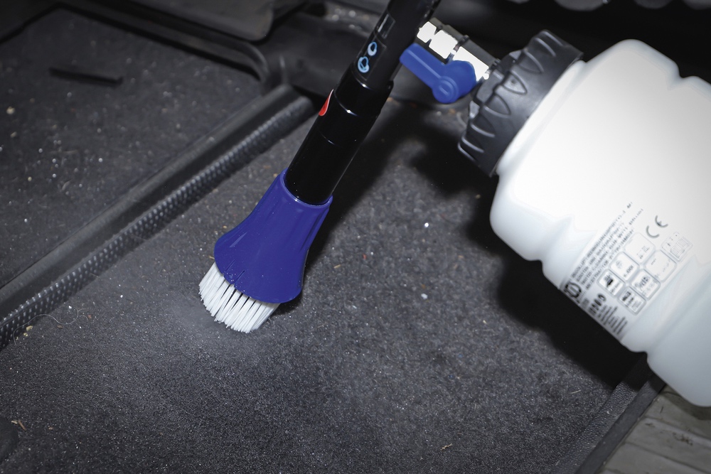 - na čistenie znečistených povrchov, napr. polstrov, rohoží, ako aj na ošetrenie povrchov vozidiel a na čistenie ráfikov a súčastí vhodnými čistiacimi prostriedkami