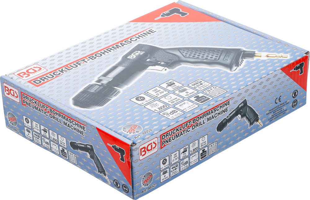 Vŕtačka pneumatická s bezkľúčovým skľučovadlom 10 mm, 1800 ot./min, BGS 8852