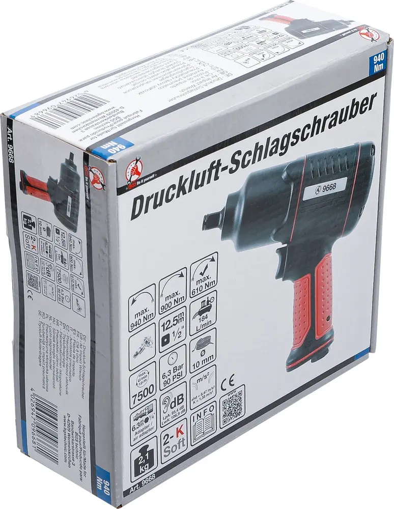 Uťahovák pneumatický úderový 1/2″, 940 Nm, BGS 9668