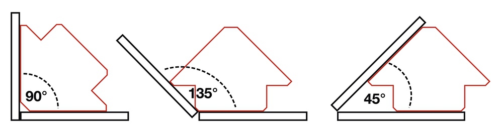 - s dvojakým použitím pre 45°, 90° a 135°