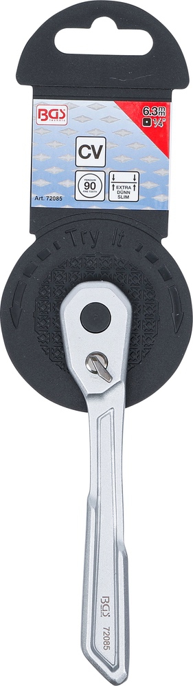 Račňa 1/4″, prepínacia, extra plochá, jemne ozubená, 90 zubov, BGS 72085