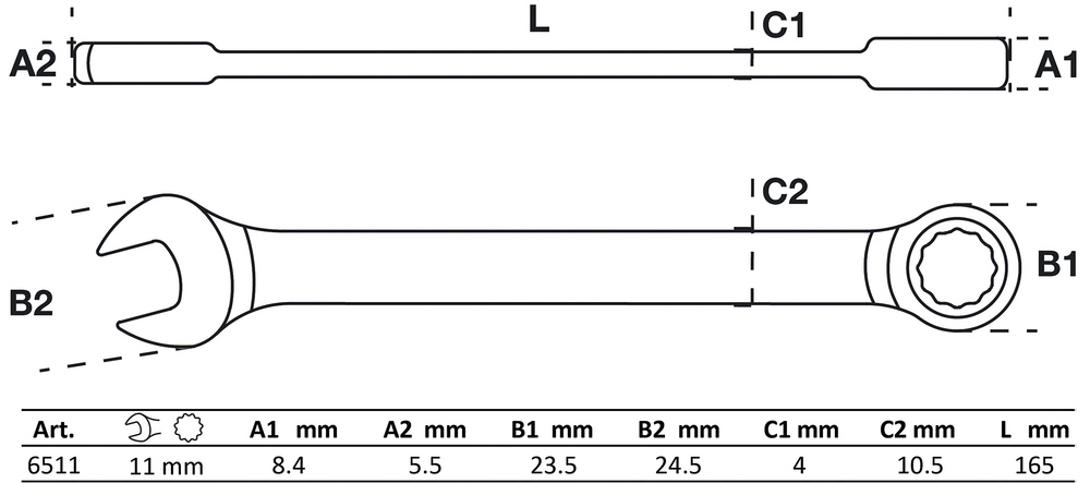 Kľúč očkoplochý račňový, 11 mm, BGS 6511