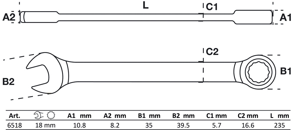 Kľúč očkoplochý račňový, 18 mm, BGS 6518