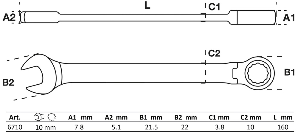 Kľúč očkoplochý račňový, kĺbový, 10 mm, BGS 6710