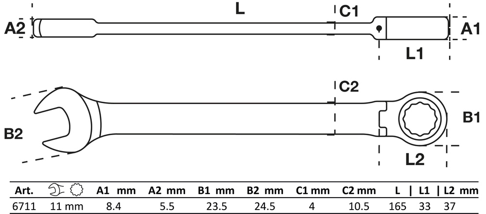 Kľúč očkoplochý račňový, kĺbový, 11 mm, BGS 6711