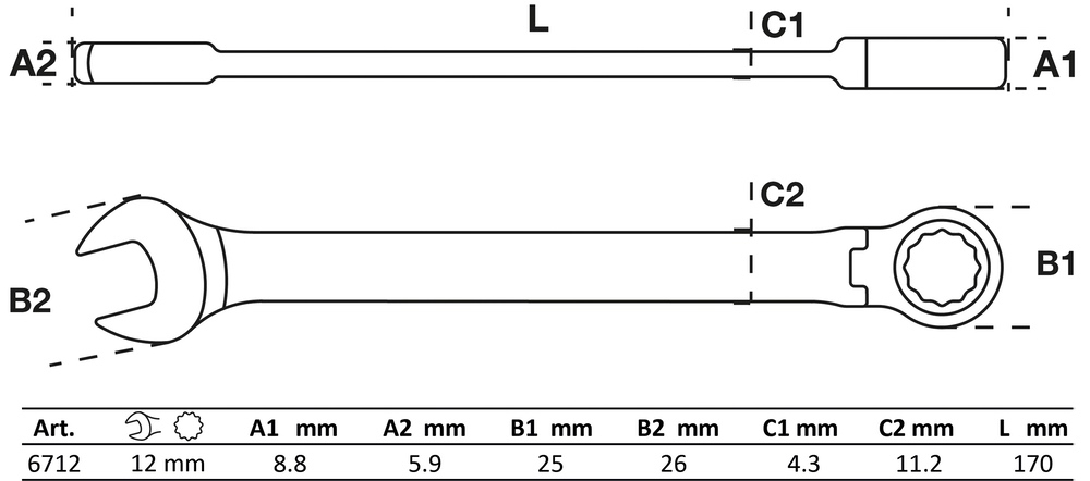 Veľkosť kľúča 1: 12 mm2 mm