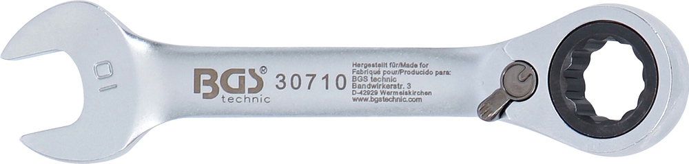 Kľúč očkoplochý račňový, krátky, prepínací, 10 mm, BGS 30710