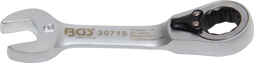 Kľúč očkoplochý račňový, krátky, prepínací, 15 mm, BGS 30715