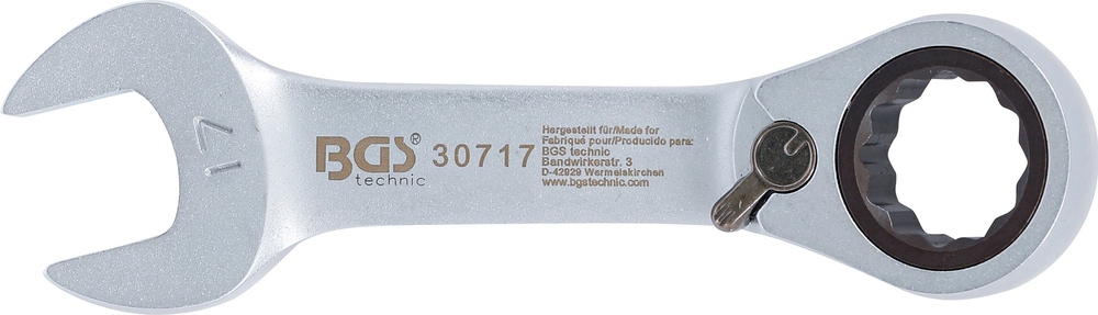 Kľúč očkoplochý račňový, krátky, prepínací, 17 mm, BGS 30717