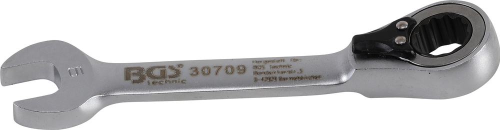 Kľúč očkoplochý račňový, krátky, prepínací, 9 mm, BGS 30709