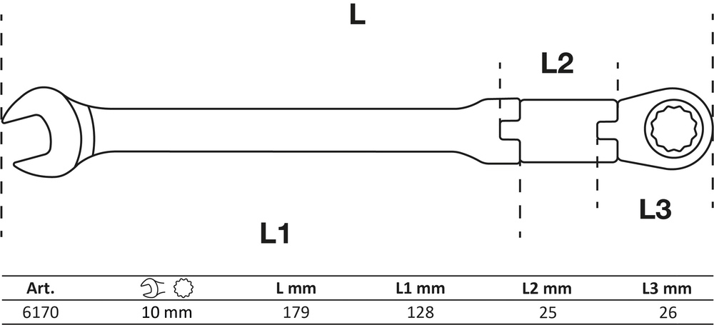 Kľúč očkoplochý račňový, dvojkĺbový, nastaviteľný, 10 mm, BGS 6170