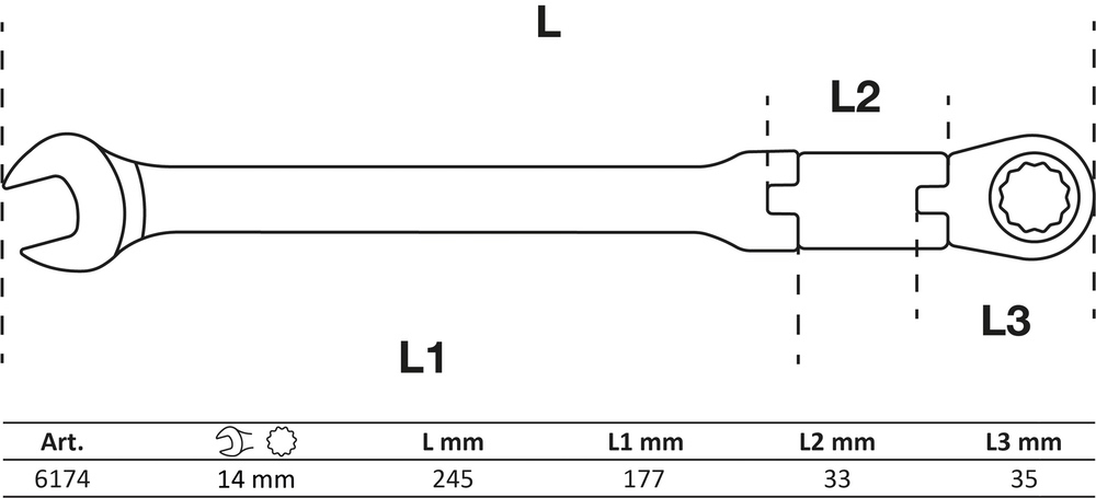 Kľúč očkoplochý račňový, dvojkĺbový, nastaviteľný, 14 mm, BGS 6174