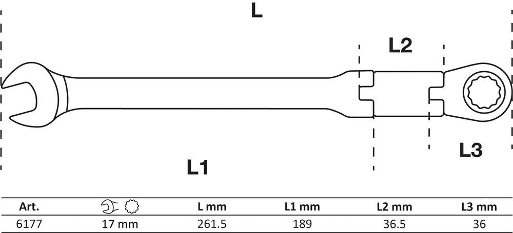 Kľúč očkoplochý račňový, dvojkĺbový, nastaviteľný, 17 mm, BGS 6177