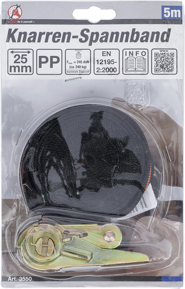 Pás upínací s račňou, 5 m x 25 mm, BGS 3550