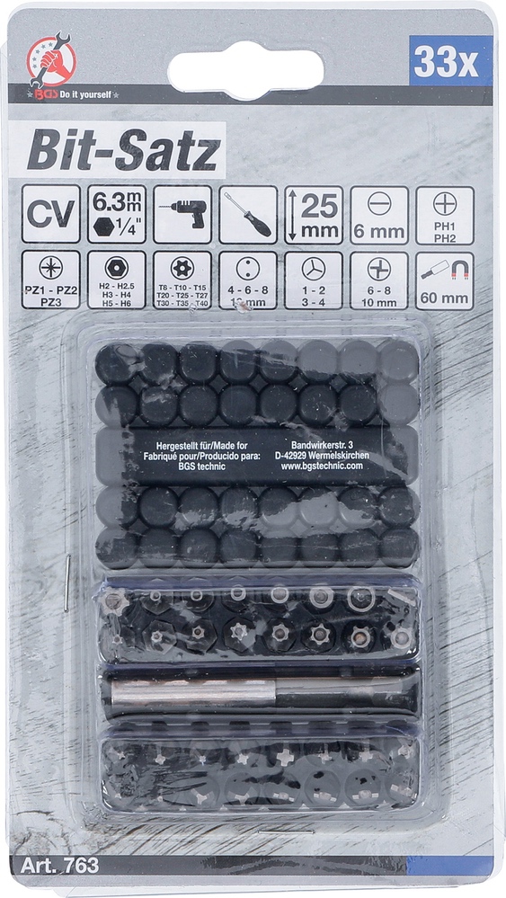 Sada bitov | krátke | pohon vonkajší šesťhran 6,3 mm (1/4″) | rôzne profily | 33dielna