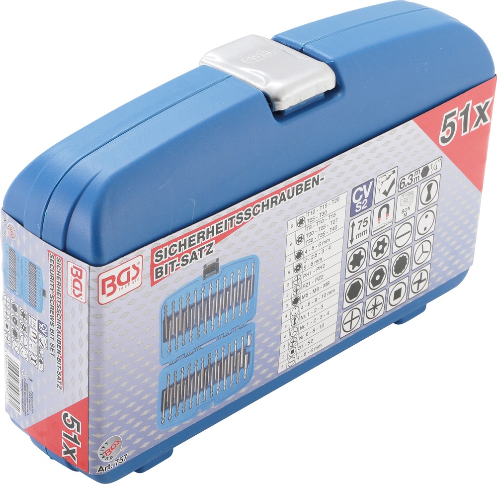 Bity 1/4″ na bezpečnostné skrutky, dlhé, 51 dielov, BGS 757