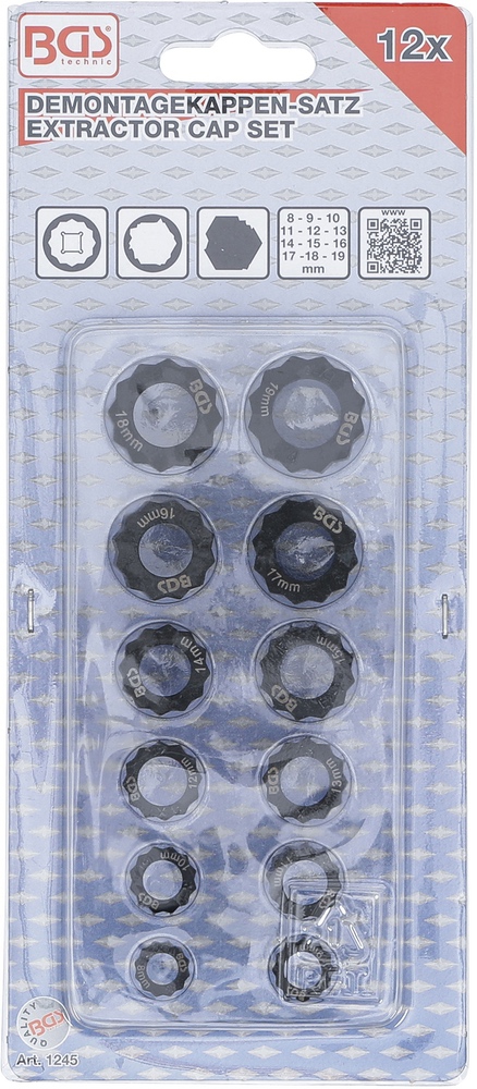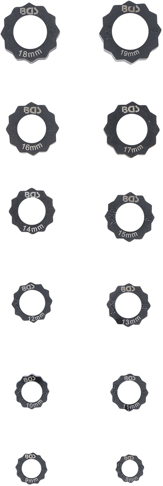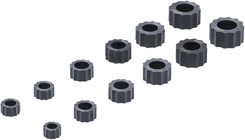 - obsahuje 12 adaptérov nasledujúcich veľkostí: 8 – 9 – 10 – 11 – 12 – 13 – 14 – 15 – 16 – 17 – 18 – 19 mm
