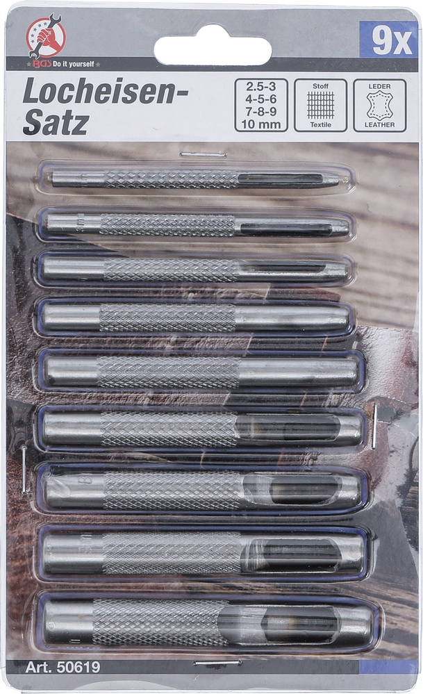 Dierovače, 2,5 – 10 mm, 9 dielov, BGS 50619
