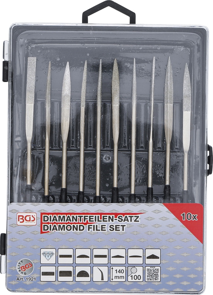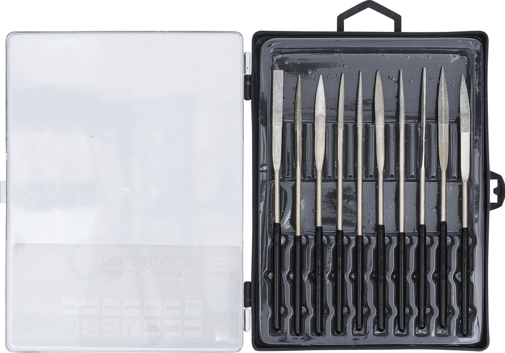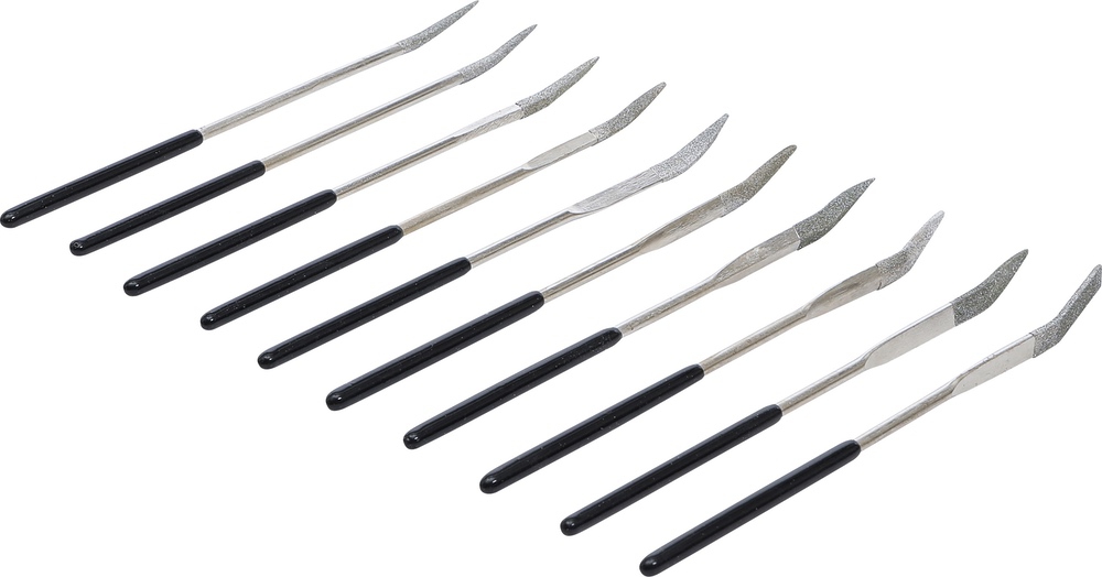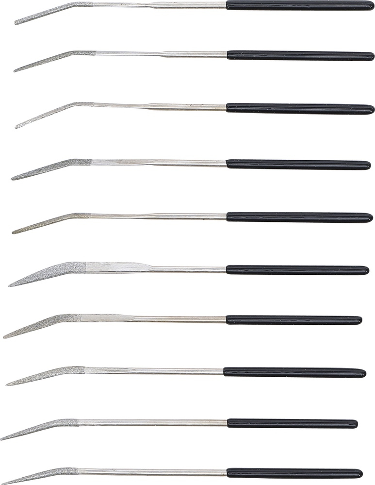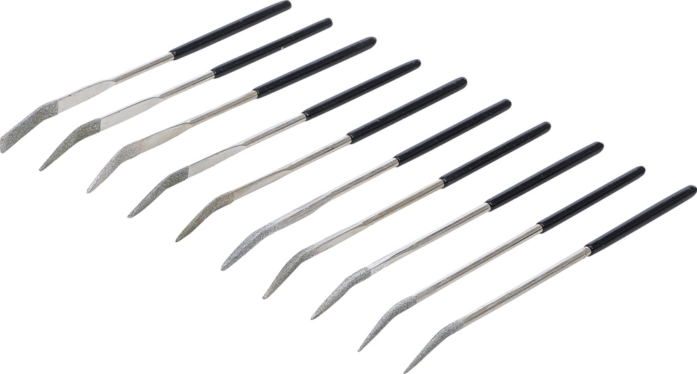 Pilníky diamantové, ohnuté, 140 x 3 mm, 10 dielov, BGS 1921