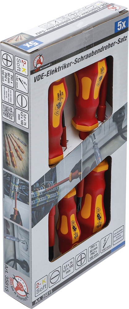 Skrutkovače elektrikárske VDE so skúšačkou, ploché SL 3 – 4 mm, krížové PH1 – PH2, 5 dielov, BGS 35815