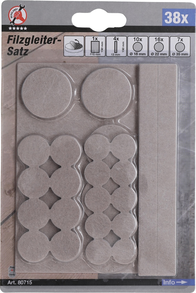 - 7 plstených podložiek, okrúhle, Ø 35 mm