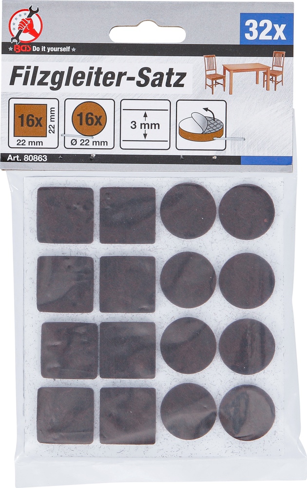 - 16 plstených podložiek, štvorcové, 22 × 22 mm